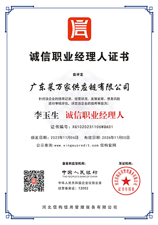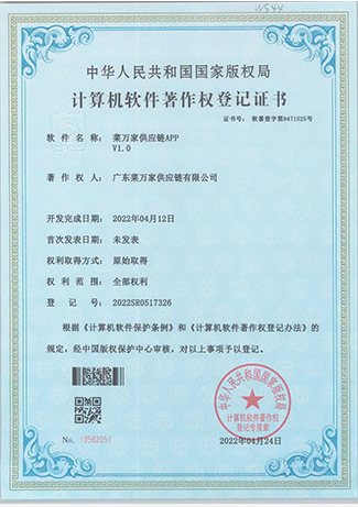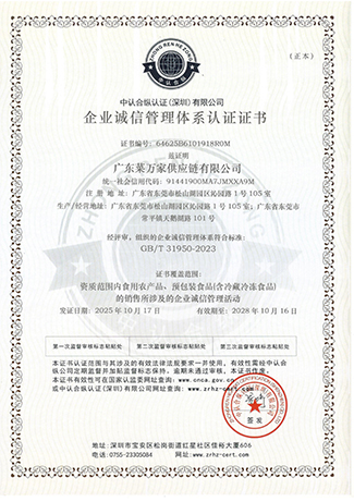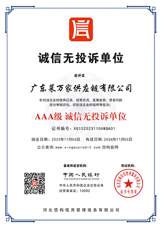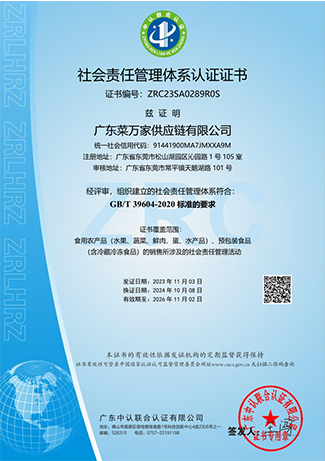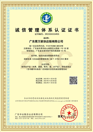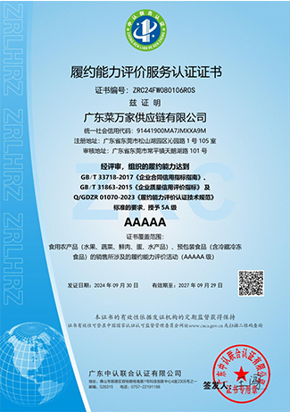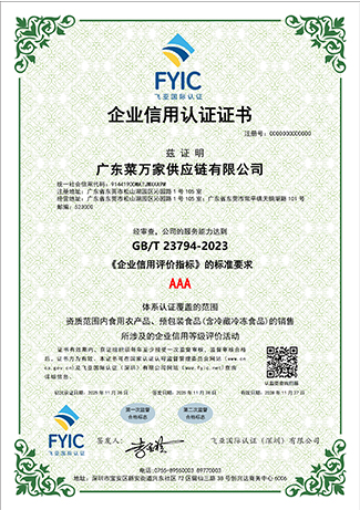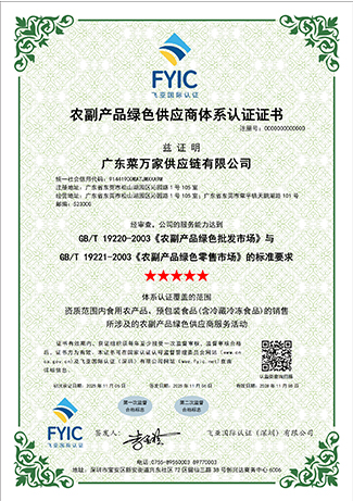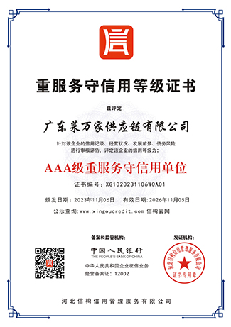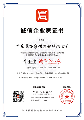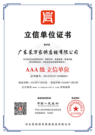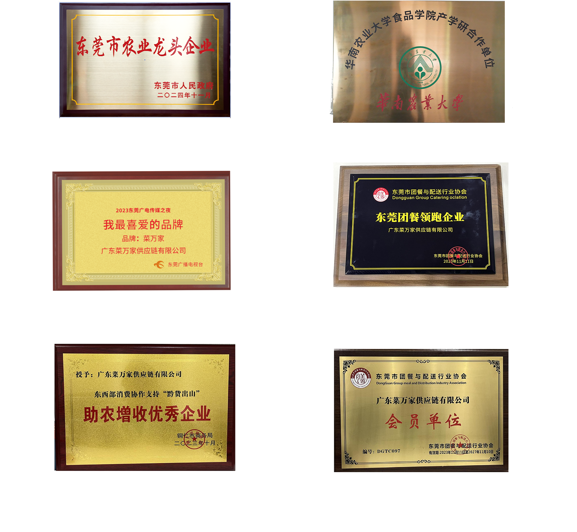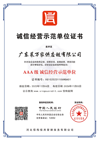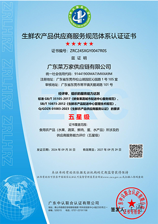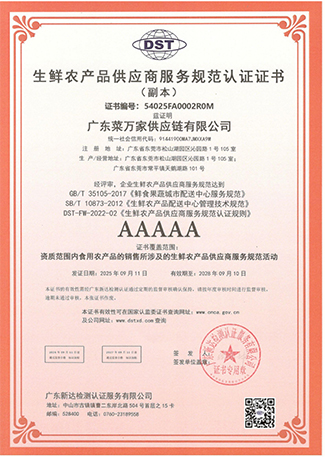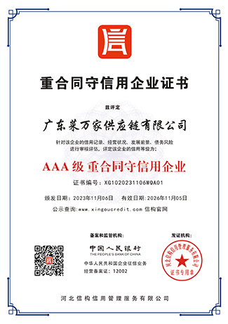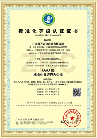 9 月份获取国家商标局“菜万家”的注册商标证书。 获得东莞市政府颁发“农业龙头企业”。