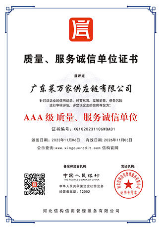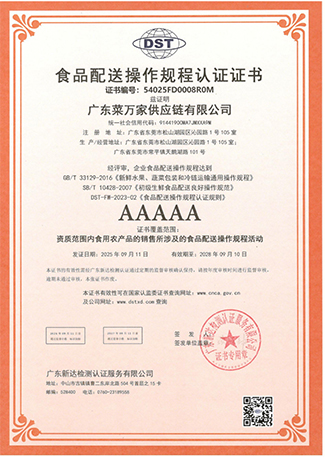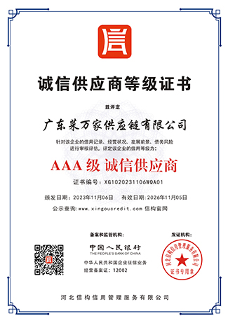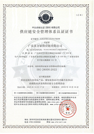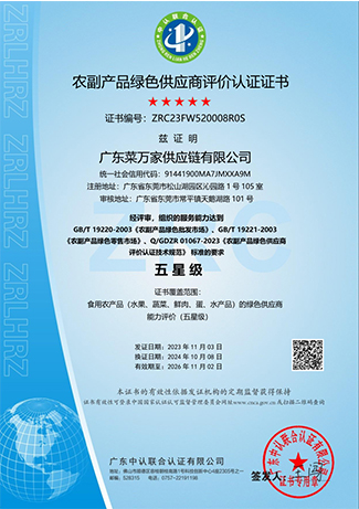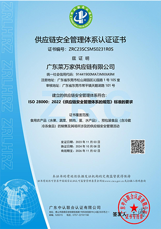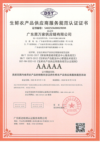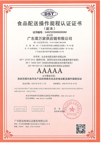广东菜万家供应链有限公司(简称“菜万家”),广东菜万家供应链有限公司成立于2022年,秉承数字经济发展趋势应运而生,专注于食堂供应链,自主创新开发APP网上下单,一站式采购全网统一价,专车配送无理由退货,自建专业食品安全检测室、全品类溯源为食品安全保驾护航。