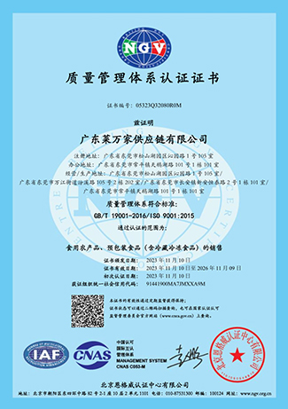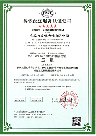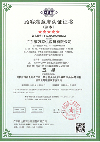 “菜万家”获得东莞电视台颁发“我最喜爱的品牌” 11 月份“菜万家”通过了国际 ISO 五大体系认证。 11 月 “菜万家”荣获东莞市团餐与配送行业协会 “东莞团餐领跑企业”。